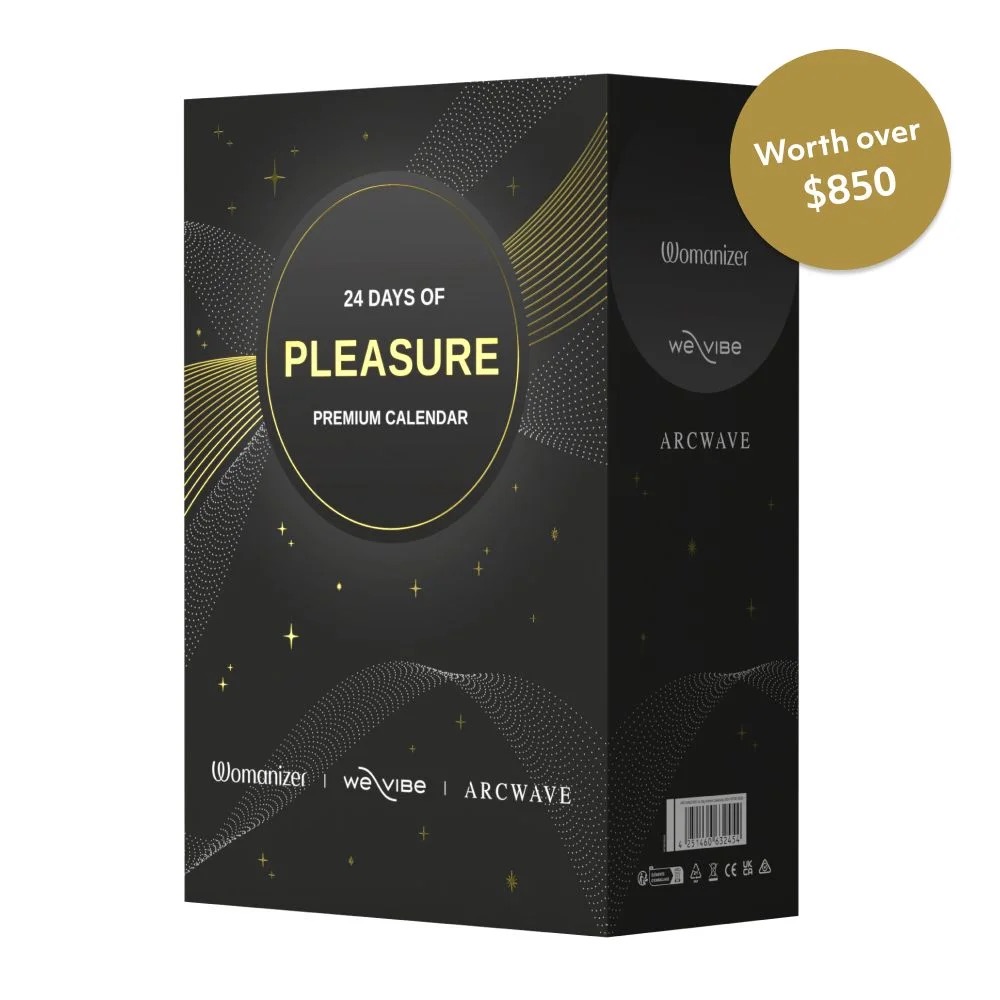Premium pleasure product company Womanizer has long been our favorite resource for vibrators and suction toys, so it should come as no surprise that their 24 Days of Pleasure is our podium pick. This calendar includes a lineup of luxury options, including the Womanizer Premium 2, which is a beloved air-stimulation toy that’s worth $199 on its own. The We-Vibe Sync, a c-shaped vibrator that is arguably the most popular couple vibrator ever made, and two high-end penis toys—a stroker and vibrating masturbator—from Arcwave are also included.