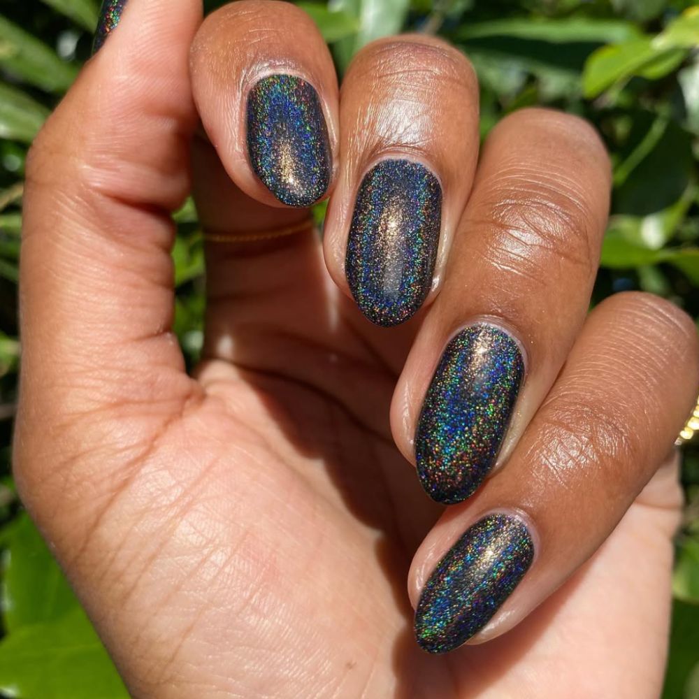 We love a holographic moment, and a black base helps further amplify that mesmerizing finish. Place under direct light to see the full rainbow effect.